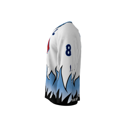 Blue Devils White Custom Dye Sublimated Jersey. You can customize with your name and number! Since all of our product offerings are customized specifically for you, you have the ability to change the colors and team names on any product. You want to swap the colors, team name, or logo from another product you’ve seen on our site? Or even put your own logo on instead? Not a problem. These simple alterations come at NO additional cost, either. Simply request any of the above in your order notes upon ordering. You’ll receive a proof once the order is received.