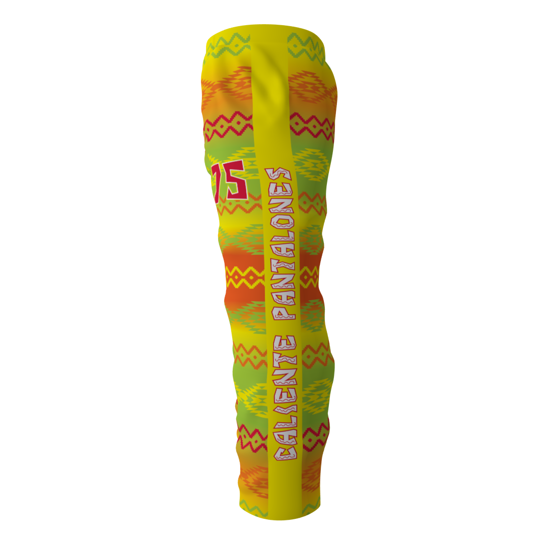 Caliente Pantalones custom roller hockey pants. These pants look amazing paired with the Caliente Pantalones jersey! Fully vector. Reinforced knees. Drawstring waist. Numbers on the pants are optional at no additional cost.