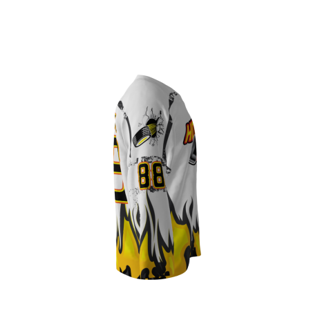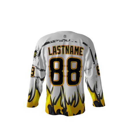 Hotshots White dye sublimated custom hockey jersey. Can customize with your name and number.