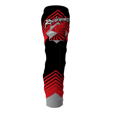 Roadrunners custom roller hockey pants. These pants look amazing paired with the Roadrunners jerseys! Fully vector. Reinforced knees. Drawstring waist. Numbers on the pants are optional at no additional cost.