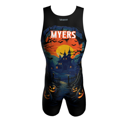 Everyone’s entitled one good scare in the Slasher custom Dye Sublimated Wrestling Singlet. Customize with your name on the back!