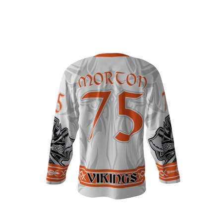 Vikings dye sublimated custom hockey jersey. You can customize with your name and number!