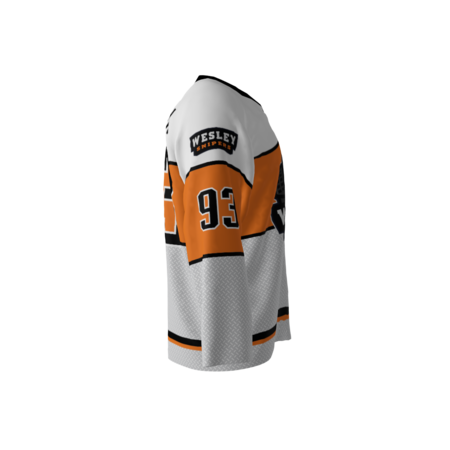 Wesley Snipers dye sublimated custom hockey jersey. Hit the corners of the rink AND the corners of the net in this Wesley Snipers hockey jersey. Details includes the post modern futuristic armored logo you’d expect with that signature Simon Phoenix orange. You can customize with your name and number! Since all of our product offerings are customized specifically for you, you have the ability to change the colors and team names on any product. You want to swap the colors, team name, or logo from another product you’ve seen on our site? Or even put your own logo on instead? Not a problem. These simple alterations come at NO additional cost, either. Simply request any of the above in your order notes upon ordering. You’ll receive a proof once the order is received.